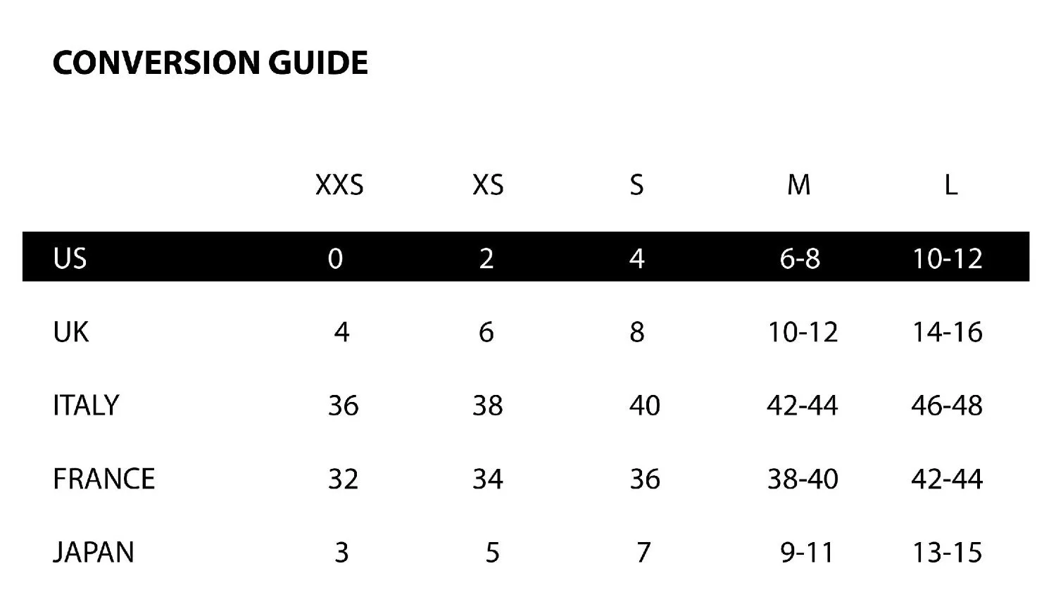Sizes may vary slightly by season and style. Please note that our size guide is not a guarantee of fit.